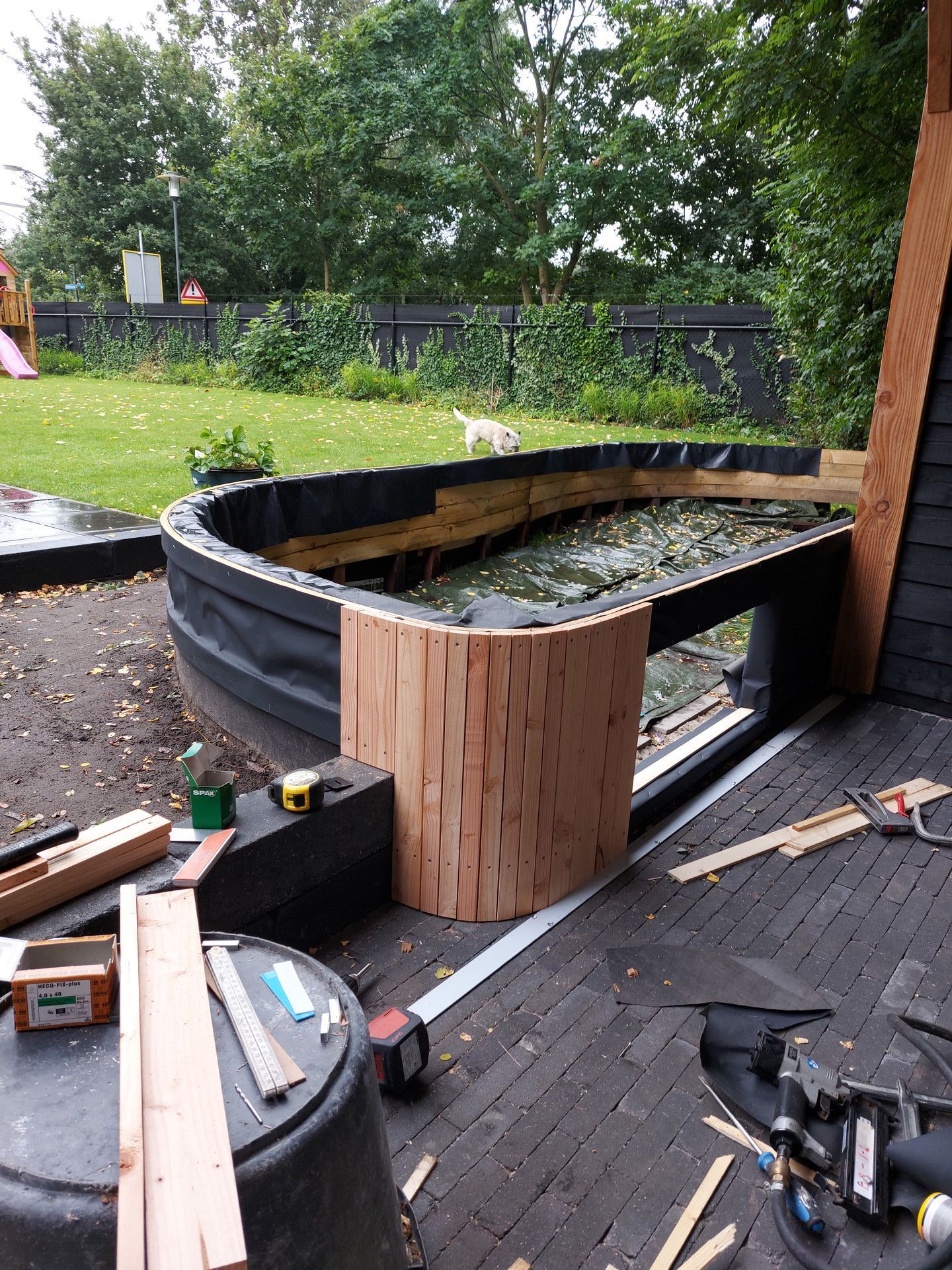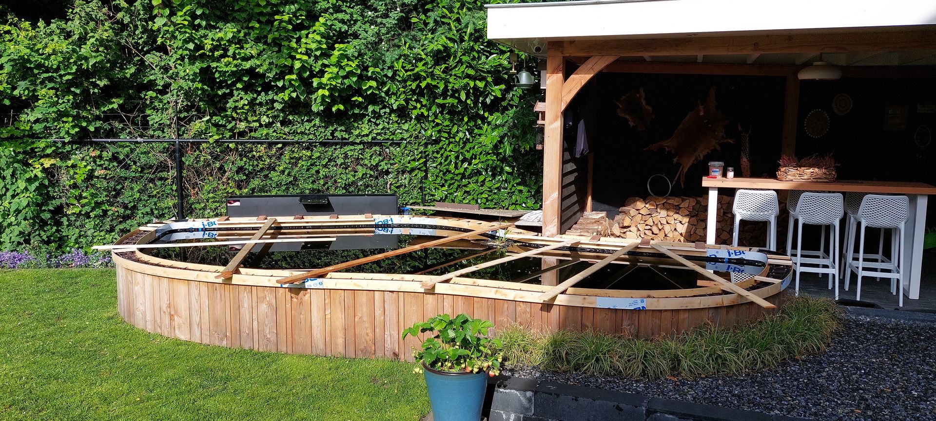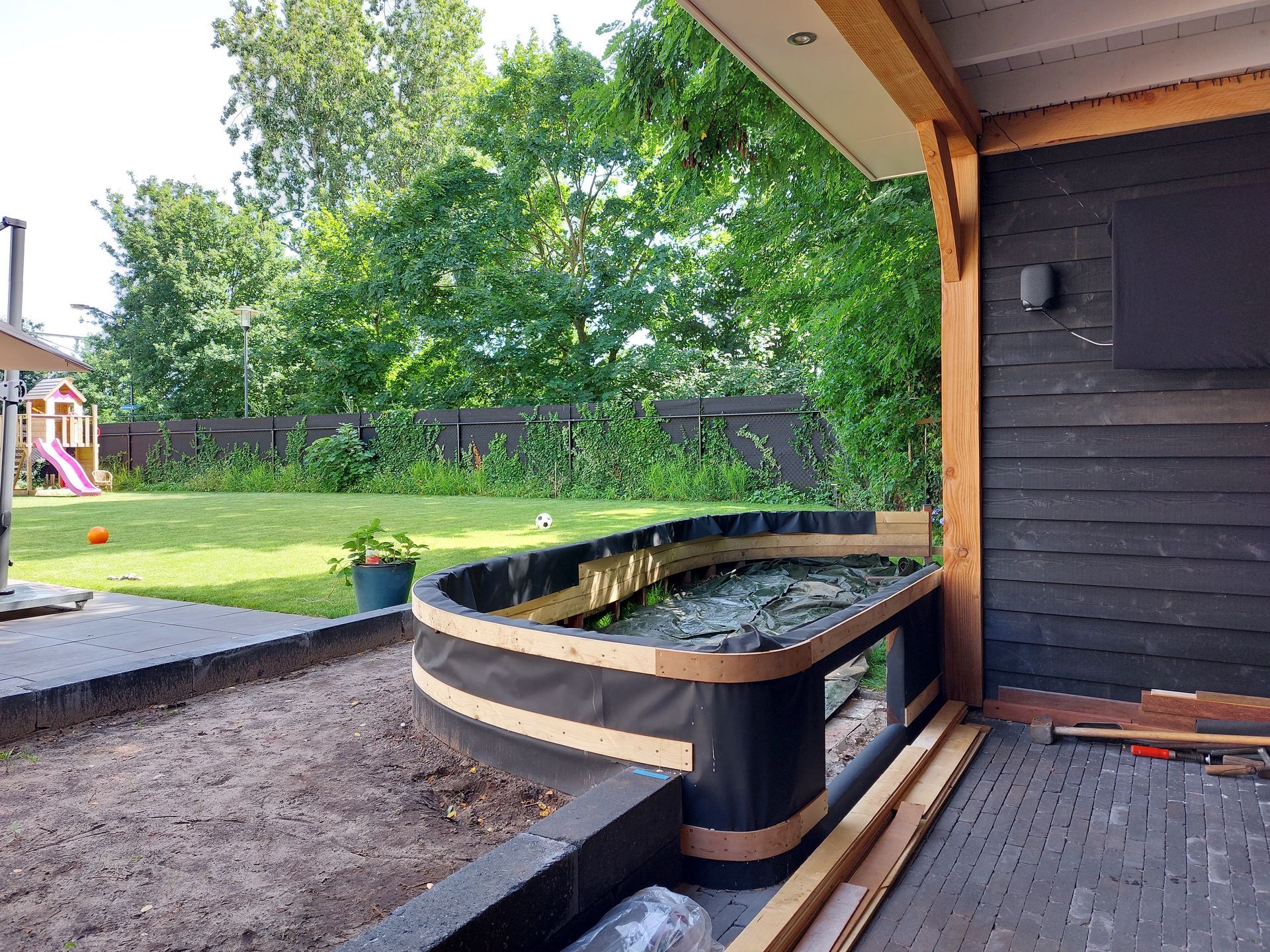 Douglas hout en betonnen randafwerking