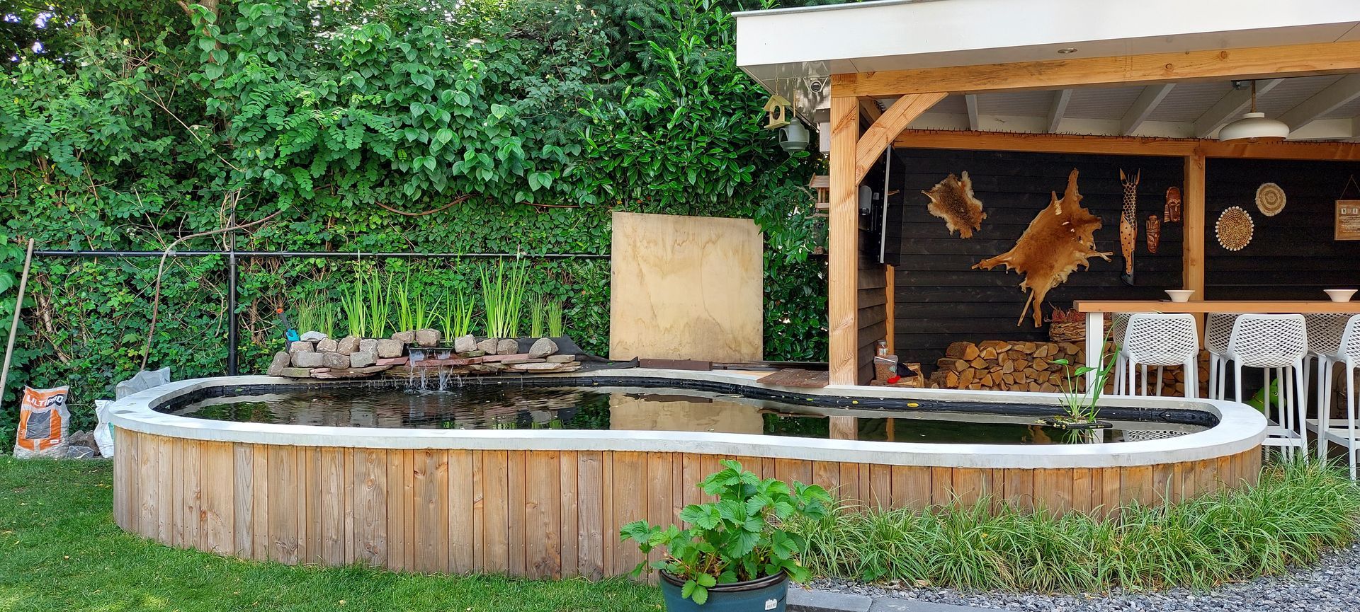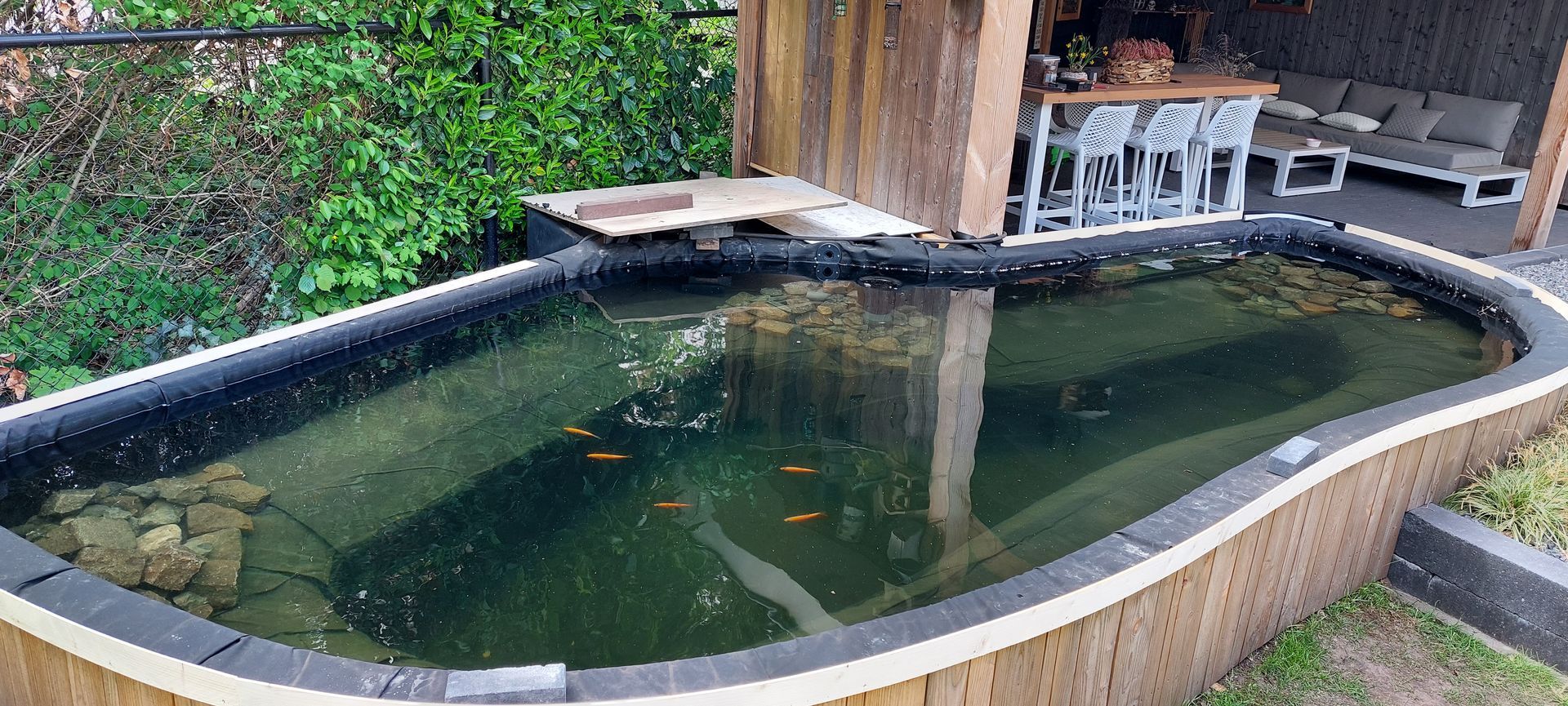 Op maat gemaakte vijver met ronde vormen